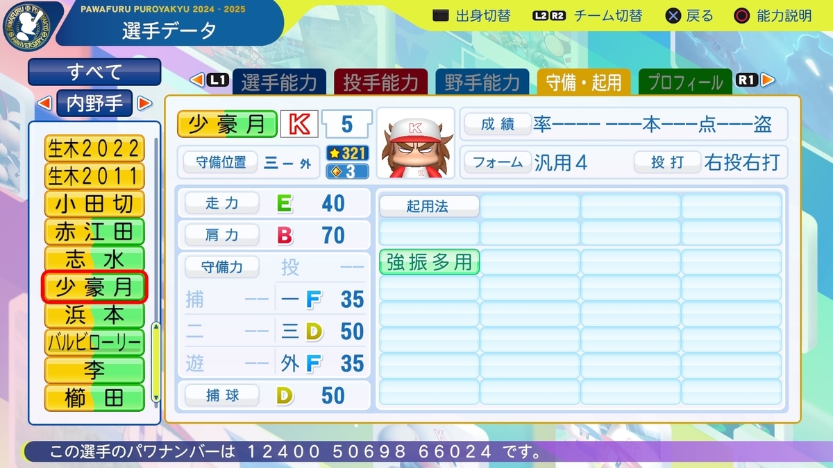 主人公の2つ下の後輩でデッキに入れると1つ下の後輩として入部してくる威圧感溢れる長距離砲の三塁手。